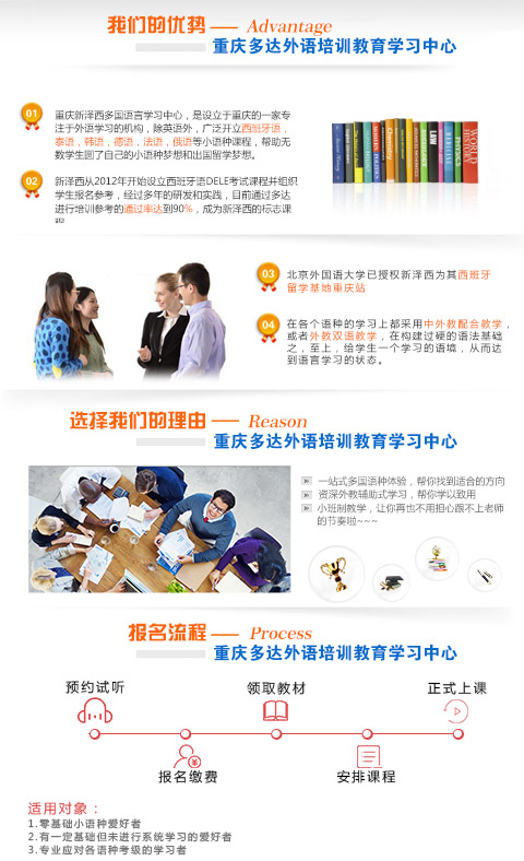 新泽西多达教育已在重庆扎根七年,在近七年的培训中,重庆新泽西多达教育勇于探索,形成了自己鲜明的重庆西班牙语学习培训特色,勤勉守信,口碑日盛。 一、学费透明课程价格明示于“西班牙语培训招生简章”,历年价格未变,不参加任何价格战,保障每位消费者的公平,小班授课,讲究教学实际。二、承诺守信提前定好西班牙语开班日期,基本不变,保证每位交费学员按期上课,保护消费者的利益。三、...